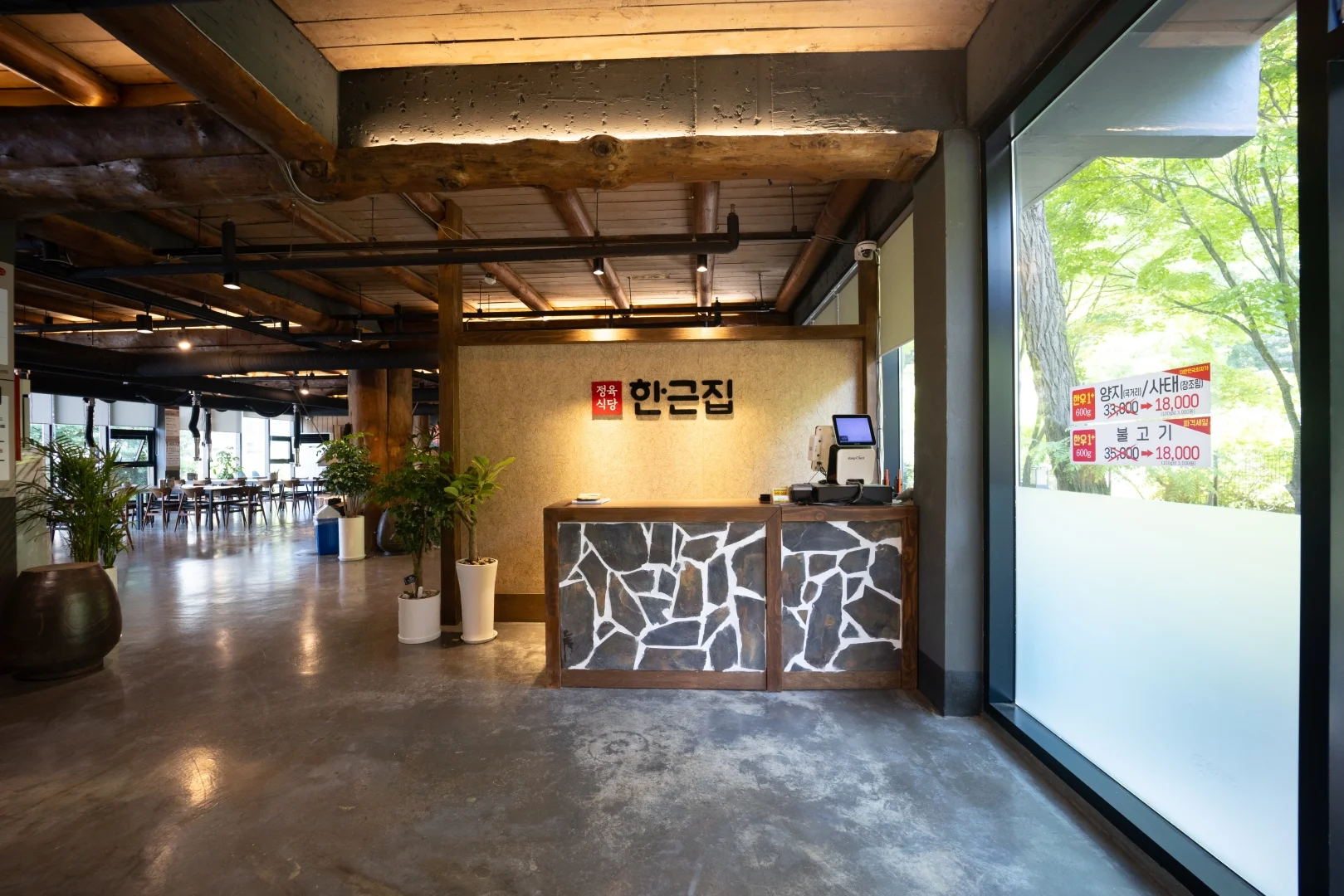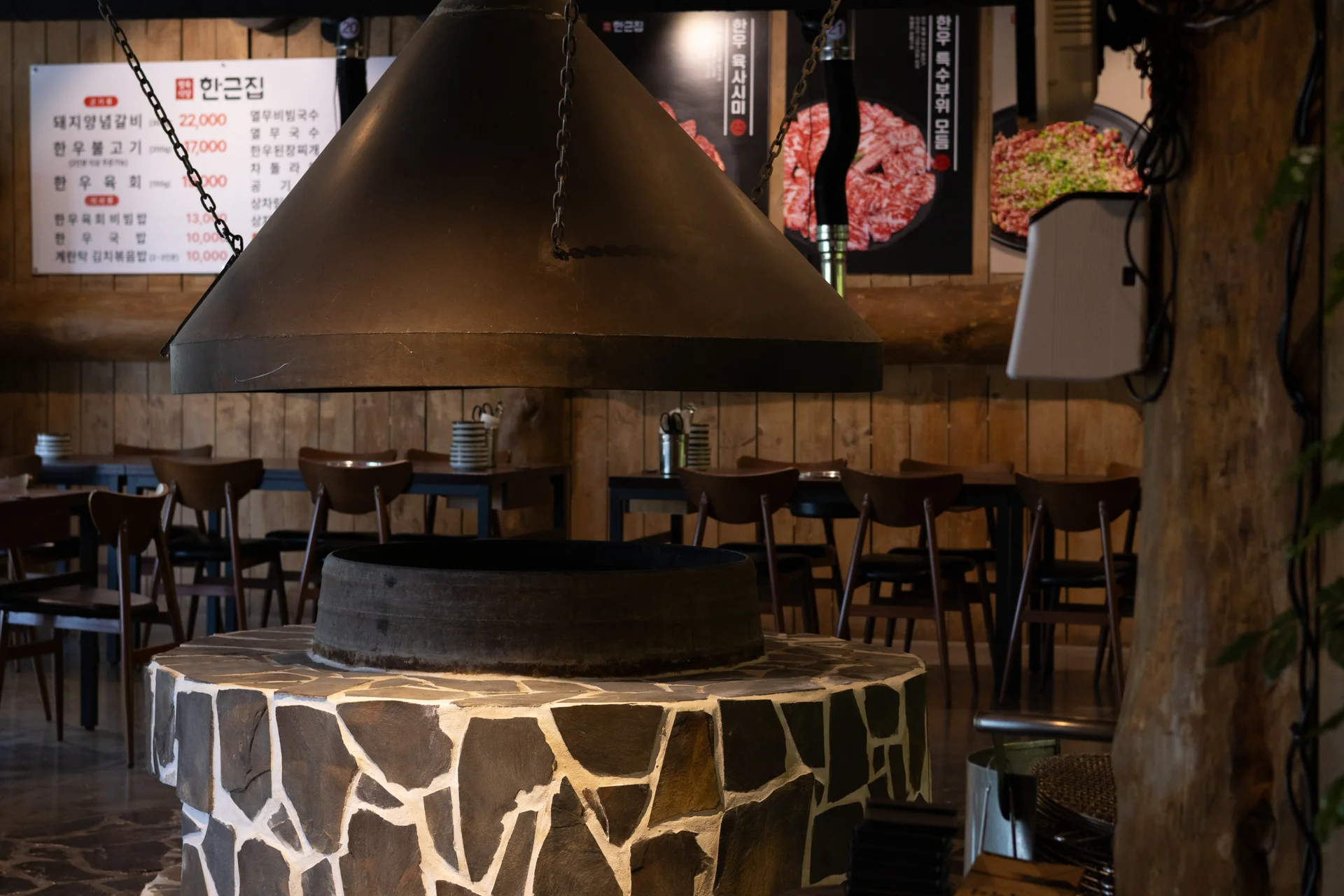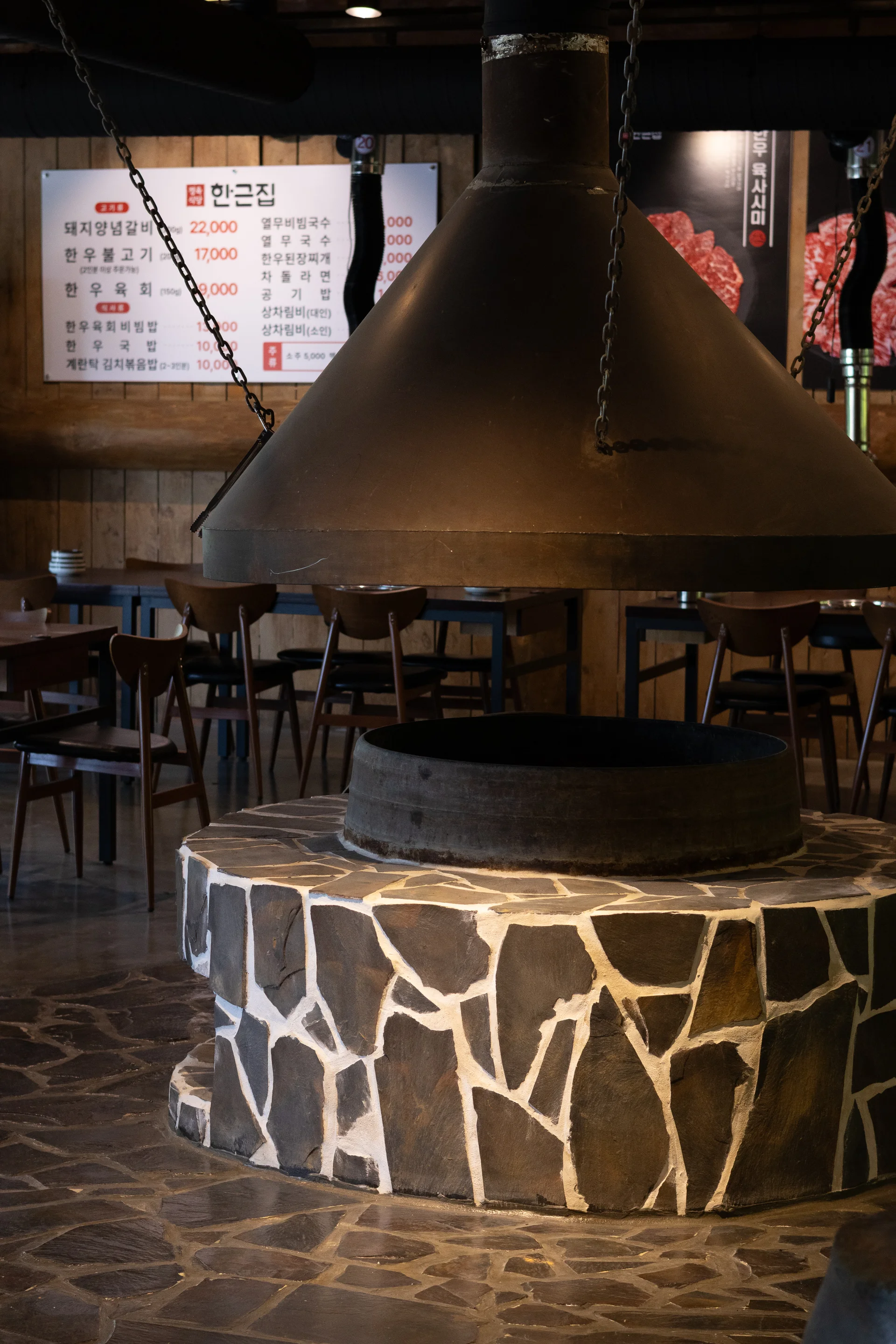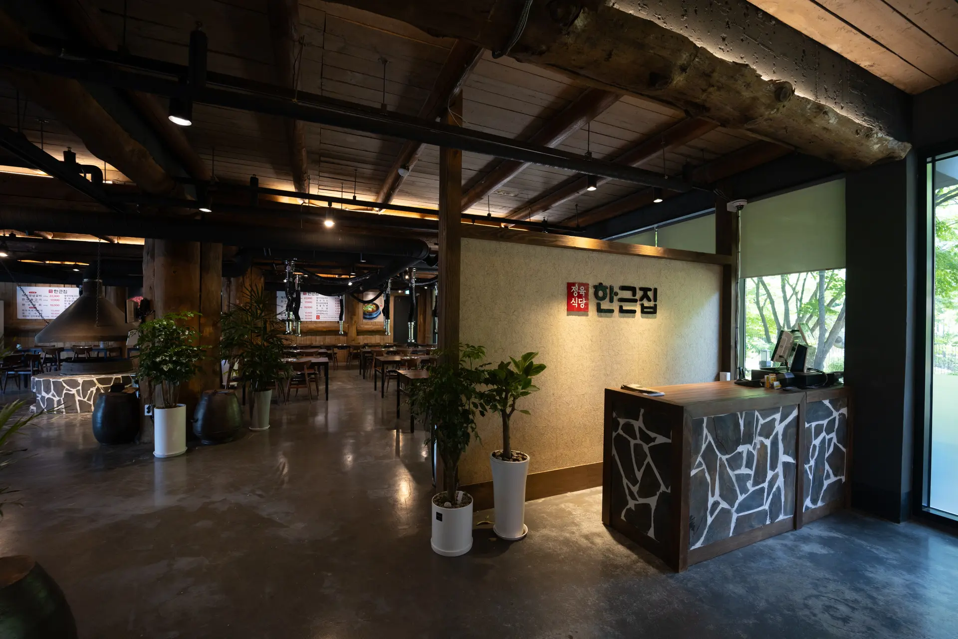 내부는 가마솥 아궁이와 숯불구이존을 중심으로 설계되어 ‘한우 본연의 맛’을 강조하는 전통적 구조를 유지하면서도, 현대적인 조명과 마감으로 모던함과 고급스러움을 동시에 표현했습니다.