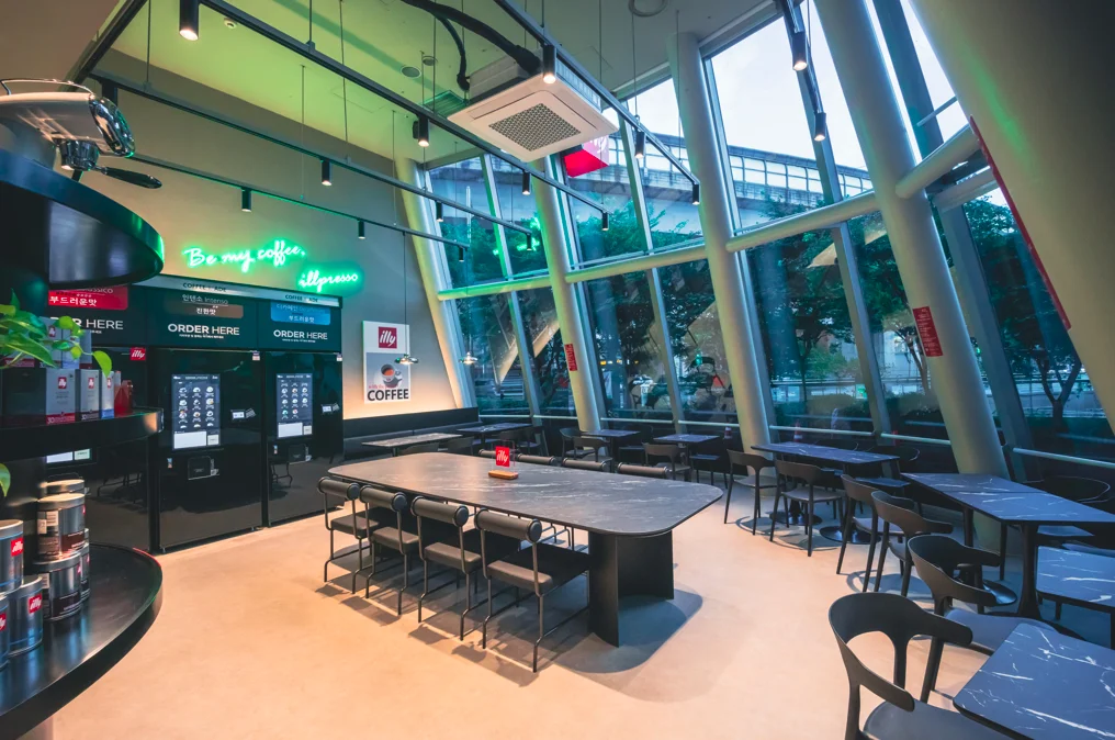 또한, 일리 커피의 브랜드 아이덴티티를 공간 디자인 곳곳에 녹여내어,