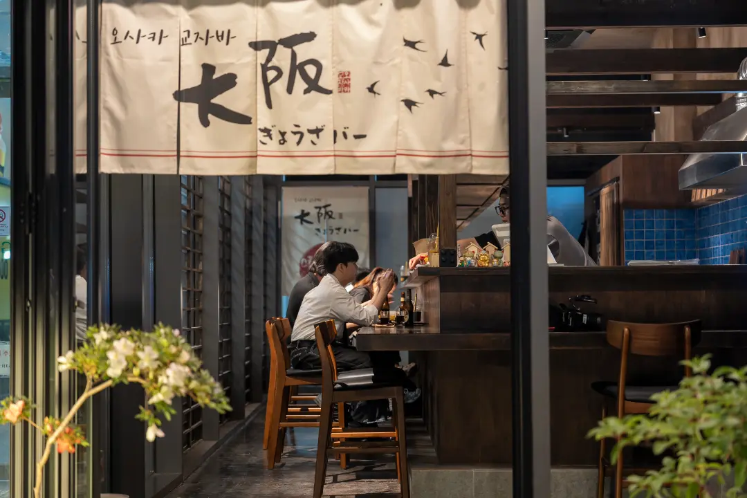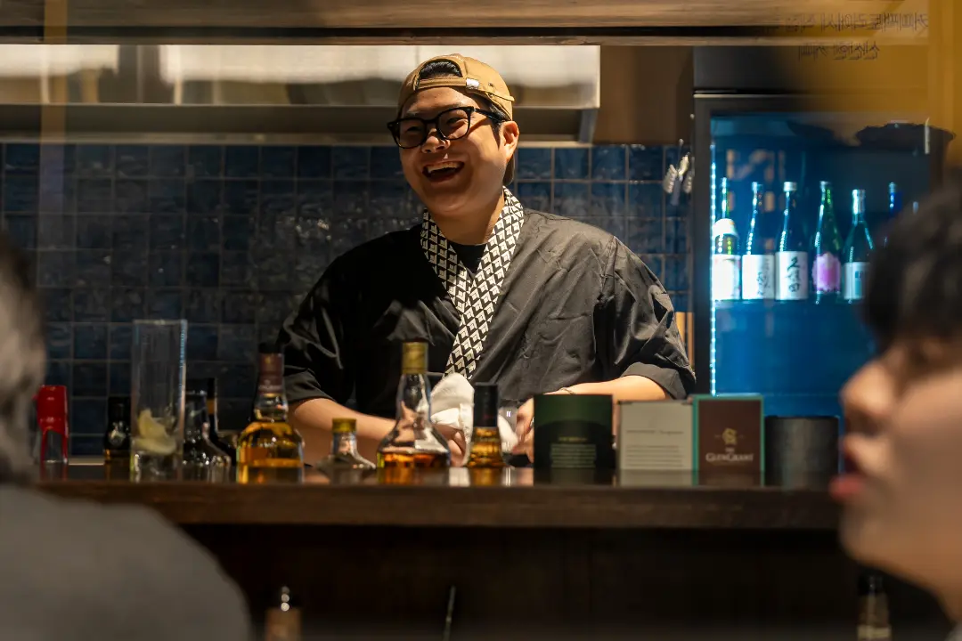 오사카교자바, 핸드메이드 원목 마감과 로컬 감성으로 완성한 일본식 위스키바 인테리어