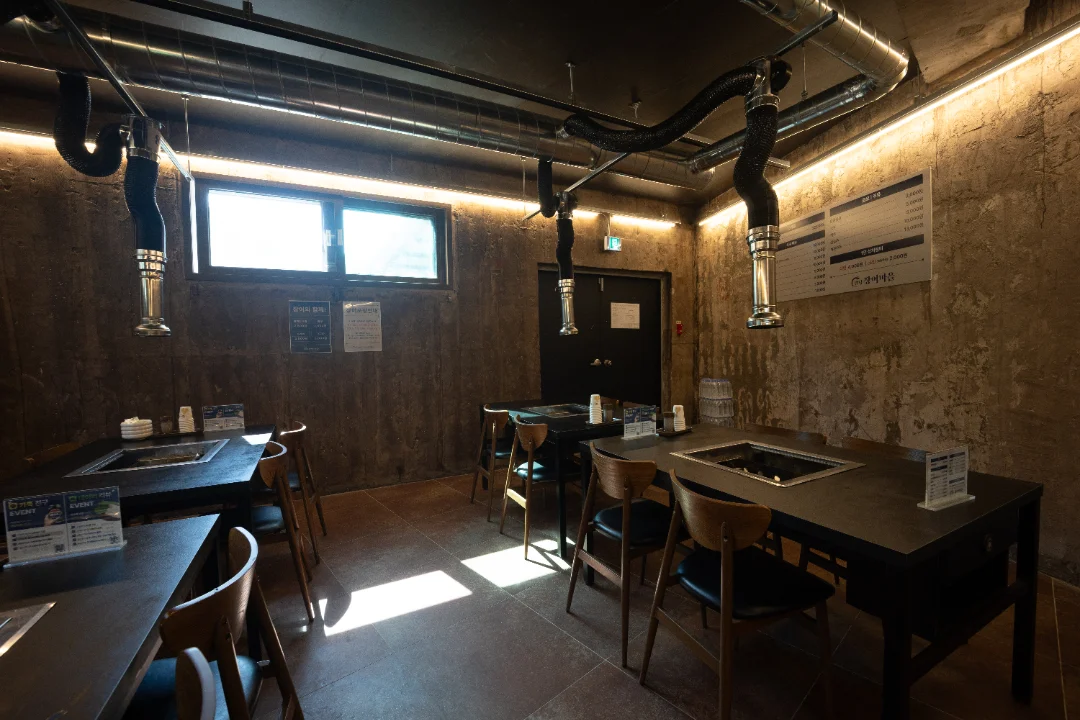 외관은 징크 마감과 구조 빔을 활용하여 단단하고 시크한 인상을 강조했으며, 브랜드의 정체성을 담은 모던 내추럴 무드를 실현했습니다.
