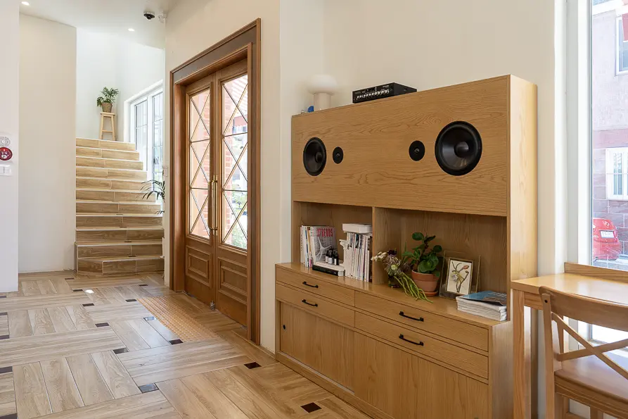 넓고 긴 2층공간에는 폴딩도어를 설치하여 뷰를 간상할 수 있도록 설계해드렸고, 계단 입구에는 일러스트 화가의 작품이 전시되어있는 갤러리공간이 공존하여 시각적인 즐거움도 함께하고 있습니다.